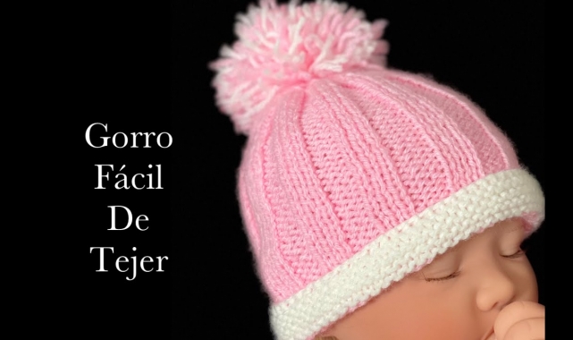 Gorro fácil y rápido de tejer con dos agujas o palillos 0-6 meses para niños y niñas